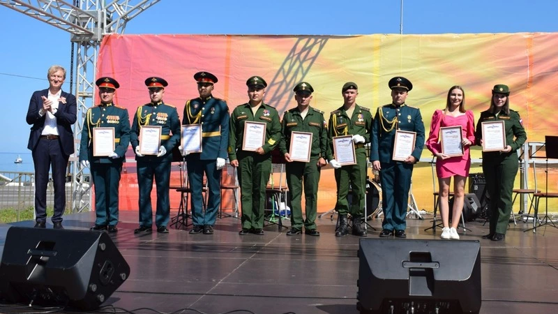 Празднования Дня победы над Японией продолжилось выступлением военного оркестра, профессиональных и самодеятельных артистов. А перед этим состоялось награждение военнослужащих, отличившихся в ратном труде, и сотрудников администрации, которые прошли курс военно-патриотической подготовки «Будь готов!».