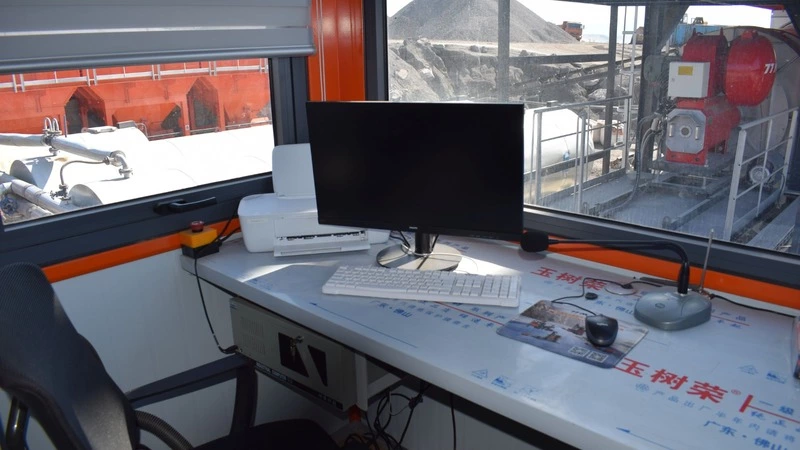Мы поднялись на уровень второго этажа в кабину оператора. На рабочем месте ничего лишнего: удобное кресло, монитор, на который выводится вся необходимая информация, и пульт управления. Для общения с коллегами предусмотрена громкая связь. Кроме того, в помещении установили осушитель воздуха.