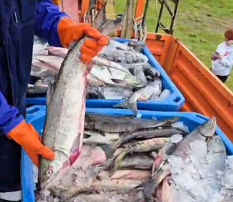 За свежим и полезным продуктом выстроилась внушительная очередь – кто ж откажется от даров моря, которые выловлены всего несколько часов назад! Хватило всем. Напомним, что первая раздача была в июле текущего года, когда в Горячие Ключи привезли тонну свежевыловленной горбуши.