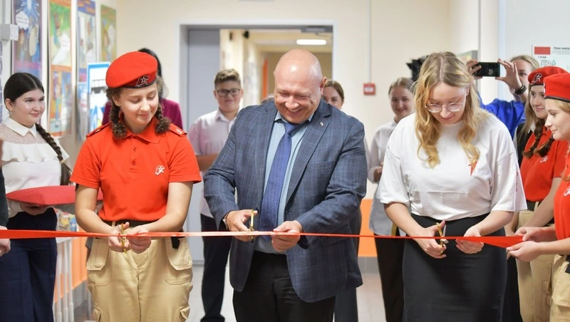 Право перерезать красную ленточку предоставили ученице 8 класса, участнице военно-патриотического движения «Юнармия» Вере Князевой, ученице 11 класса, председателю Совета движения «Первых» Курильского района Алёне Ворощук и главе Курильского муниципального округа Константину Истомину.