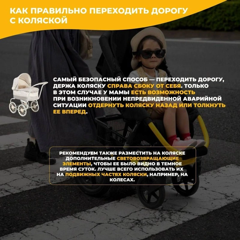 В карточках в сжатой, но предельно ёмкой и доступной форме изложены основные правила. Там даже есть информация, как правильно везти ребёнка в коляске.
